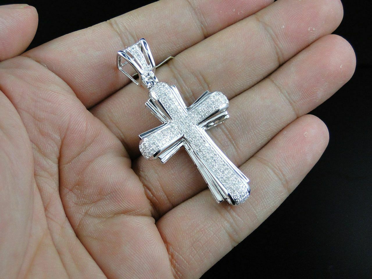 1.25ct Round Cut VVS1D Diamond Pendant Christ Cross 14k White Gold Over NO CHAIN