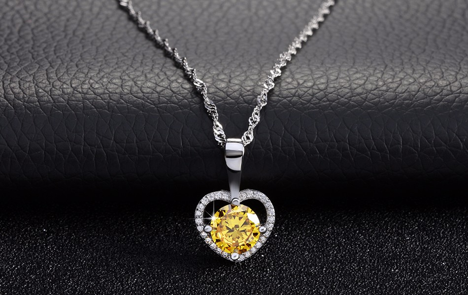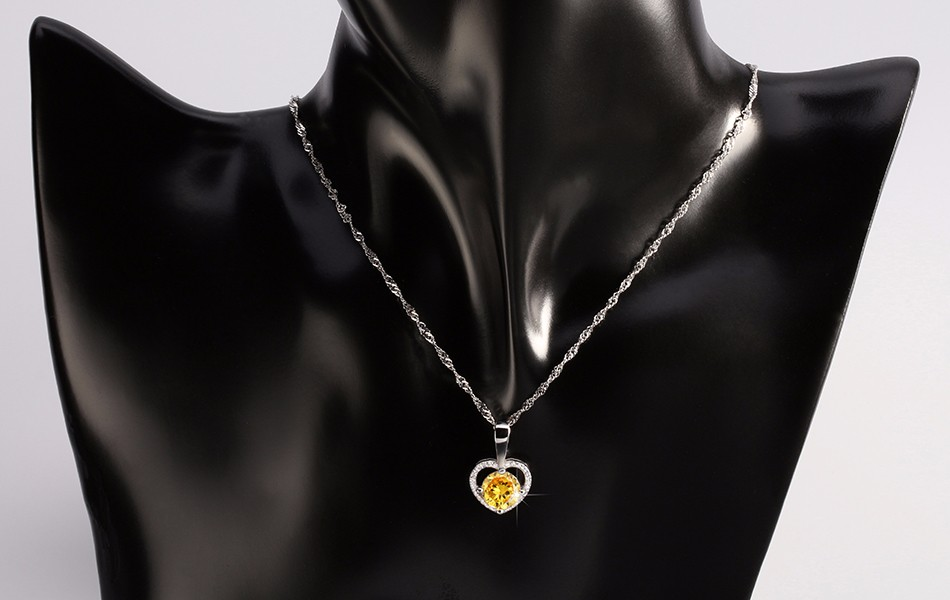 1.2ct Round Cut Yellow Citrine Pendant Heart Shape 14k WhiteGold Finish NO CHAIN