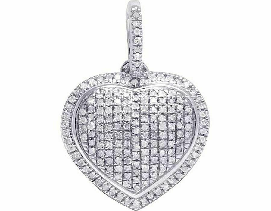1.4ct Round Cut Diamond Pendant Halo Heart Shaped 14k White Gold Finish NO CHAIN