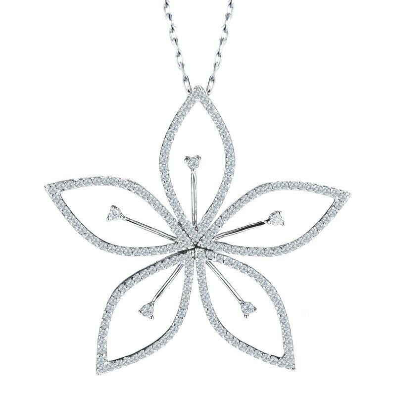 1.5ct Round Cut Diamond Pendant with Chain Flower Design 14k White Gold Finish