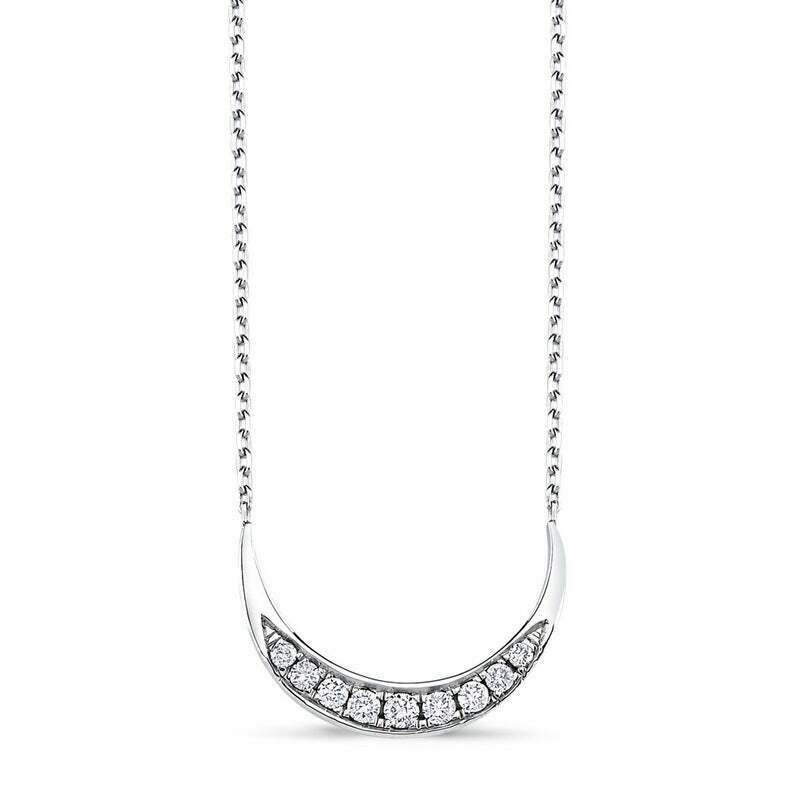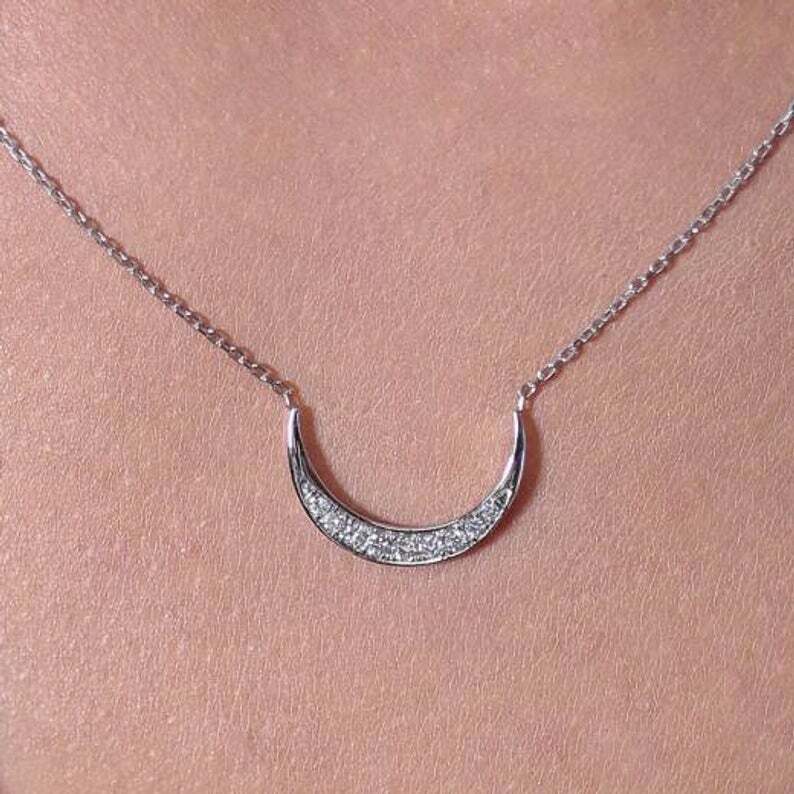 1.5ct Round Cut VVS1D Diamond Pendant Chain Crescent Moon 14k White Gold Finish
