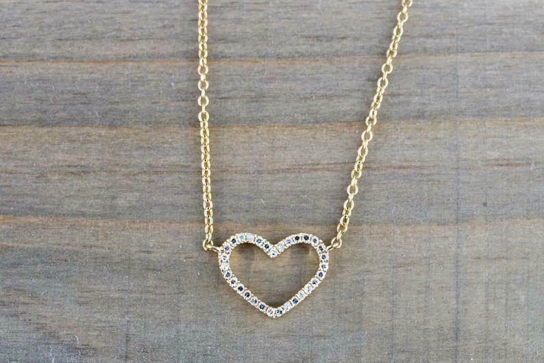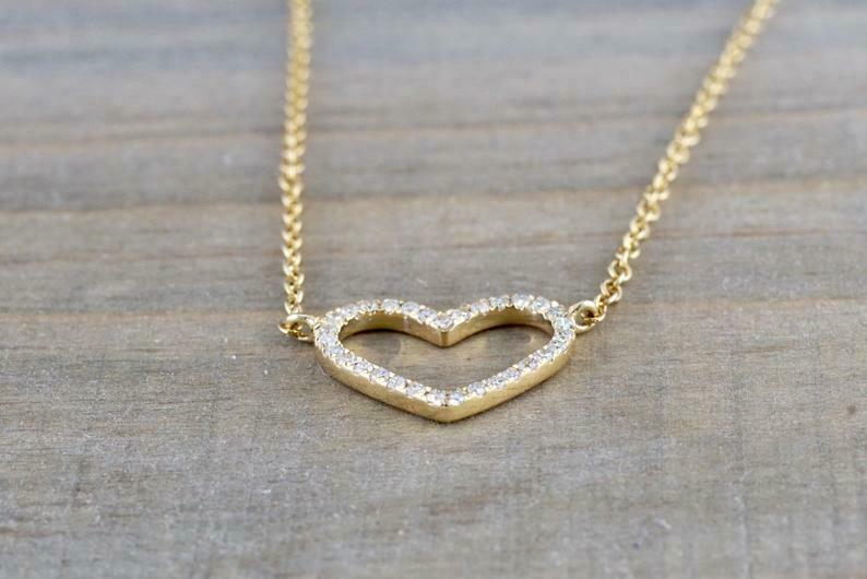 1.5ct Round Cut Diamond Heart Shape Open Design Pendant Chain 14k YellowGold Finish
