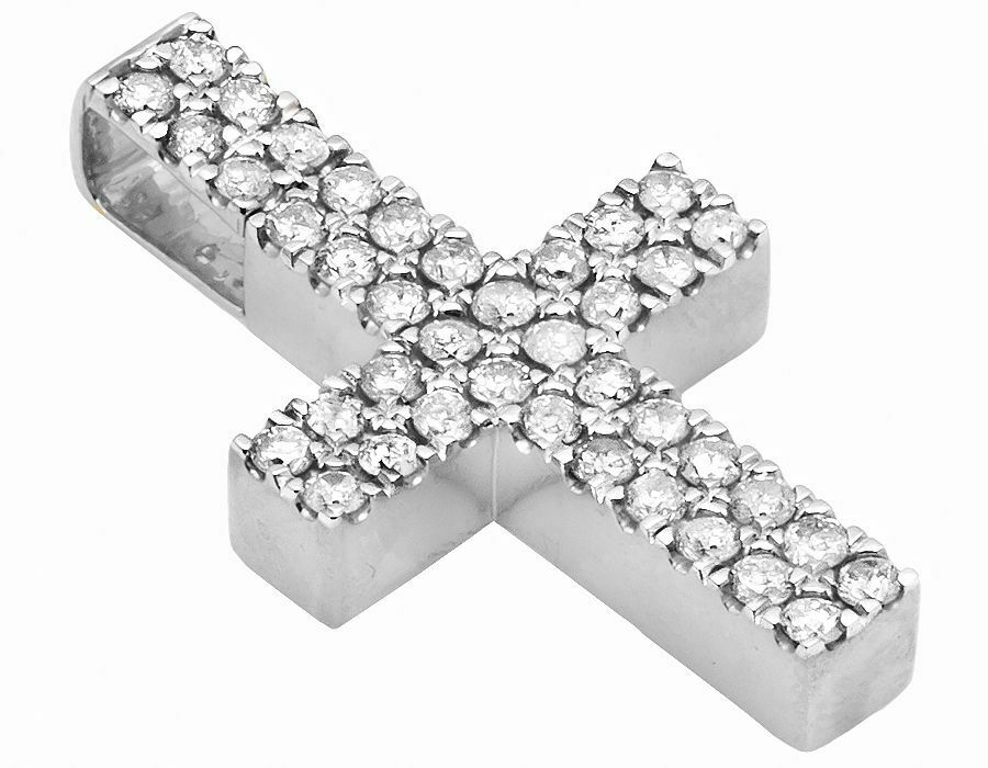 1.75ct Round Cut Diamond Pendant 2 Rows Block Cross Charm 14k White Gold Finish