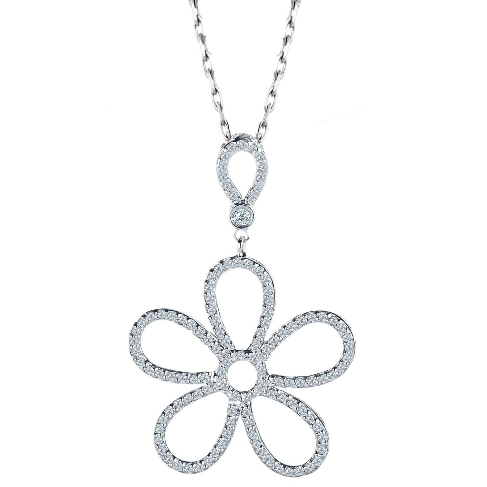 1.7ct Round Cut Diamond Pendant with Chain Flower Design 14k White Gold Finish