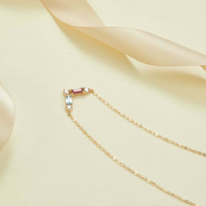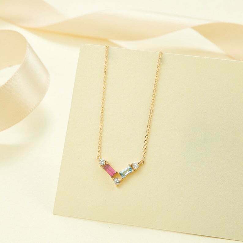 1ct Baguette Cut Pink Ruby Aquamarine V Shape Trendy Pendant 14k Yellow Gold Over