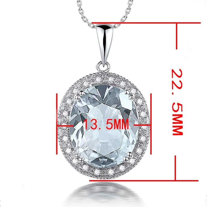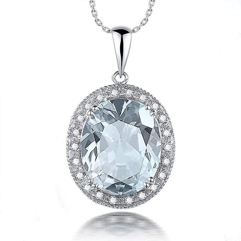 1ct Oval Cut Blue Aquamarine Halo Wedding Pendant 14k White Gold Finish NO CHAIN