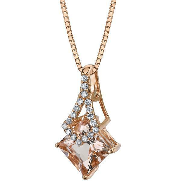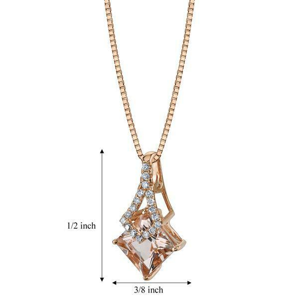 1Ct Princess Cut Peach Morganite Diamond Pendant 14K Rose Gold Finish NO CHAIN