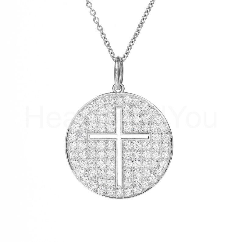 1ct Round Cut Moissanite Cross Pave Pendant with Chain 14K Yellow Gold Plated