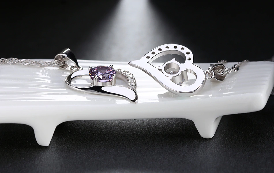 1ct Round Cut Purple Amethyst Pendant Heart Shape 14k White Gold Finish NO CHAIN