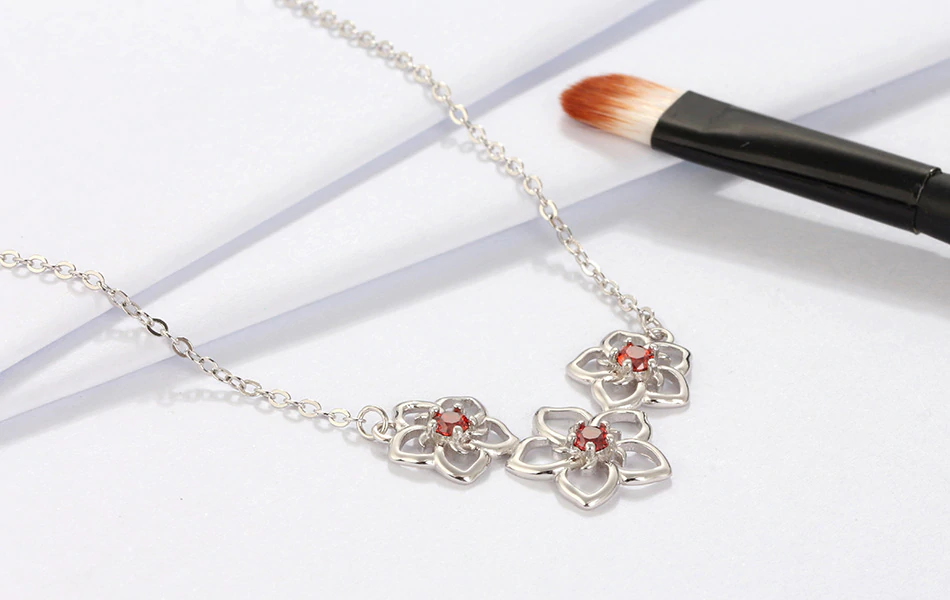 1ct Round Cut Red Garnet Hollowed Flowers Pendant with Chain 14k White Gold Over