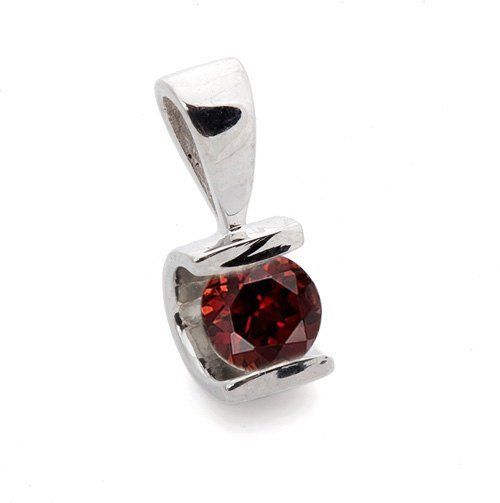 1ct Round Cut Red Garnet Unique Design Pendant 14k White Gold Finish NO CHAIN