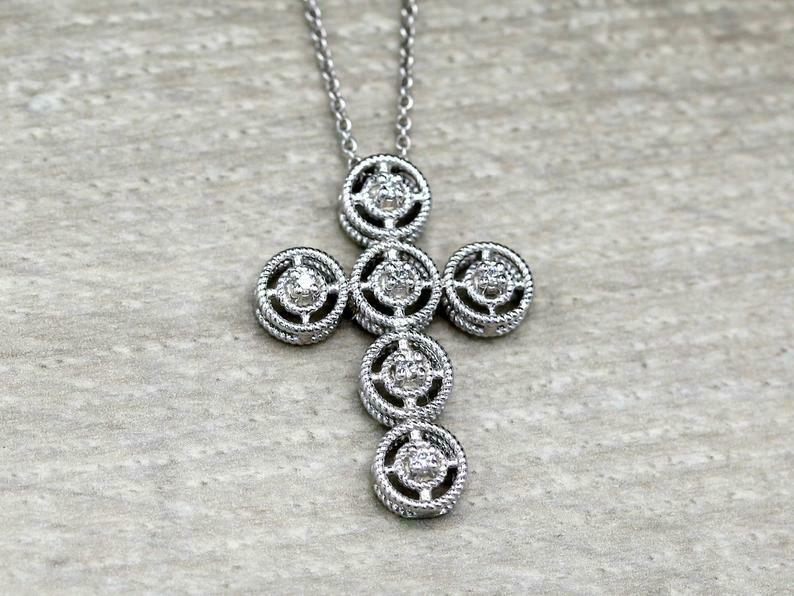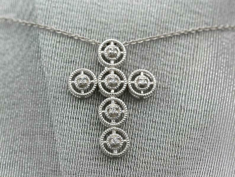 1ct Round Cut VVS1D Diamond Pendant with Chain Braided Cross 14k White Gold Over