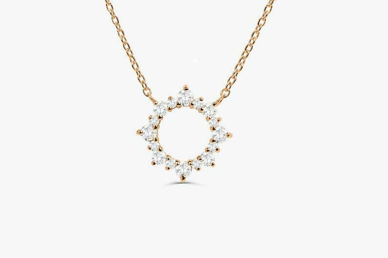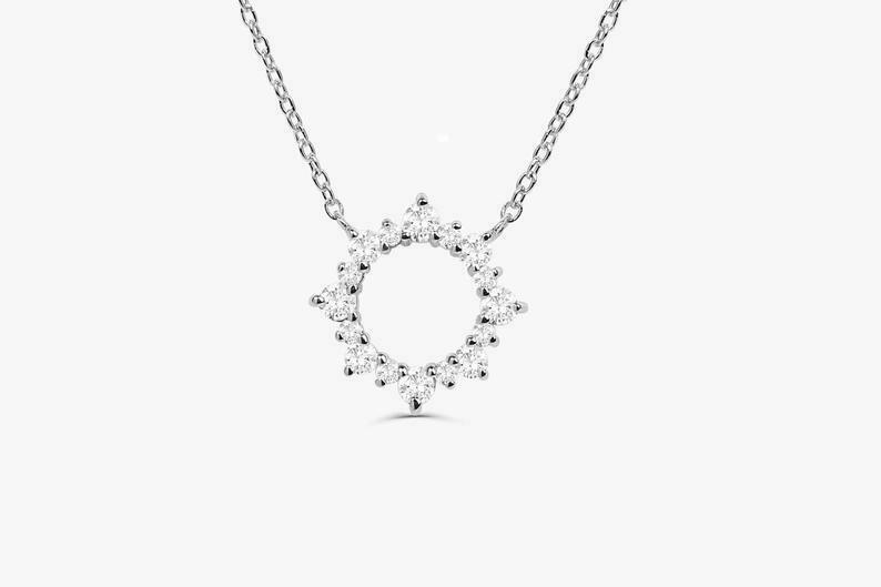 1ct Round Cut VVS1D Diamond Sun Circle Pendant with Chain 14k Yellow Gold Finish