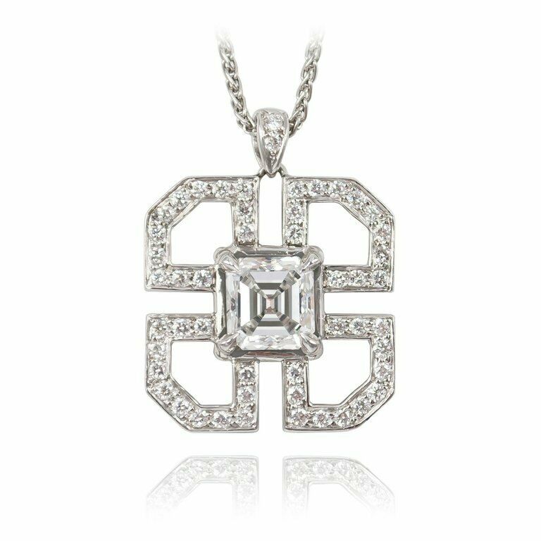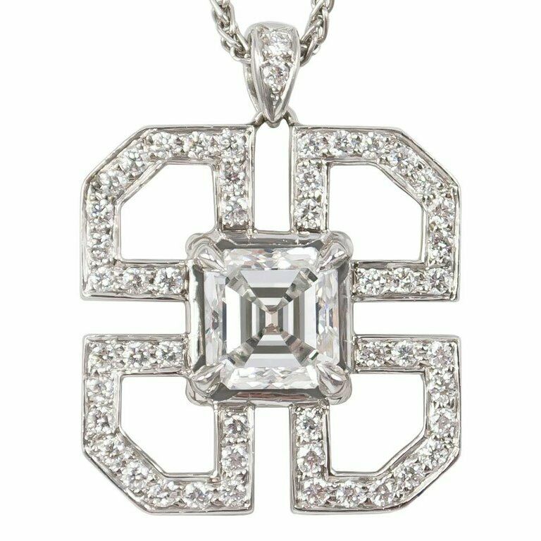 2.1ct Asscher Cut Diamond Pendant Art Deco Style 14k White Gold Finish NO CHAIN