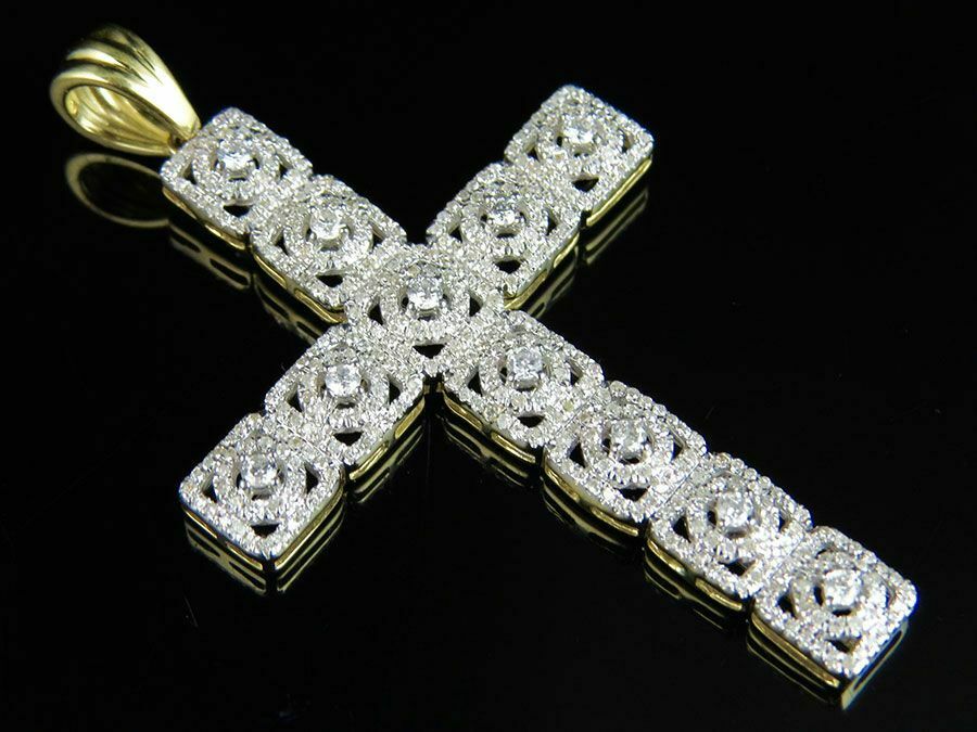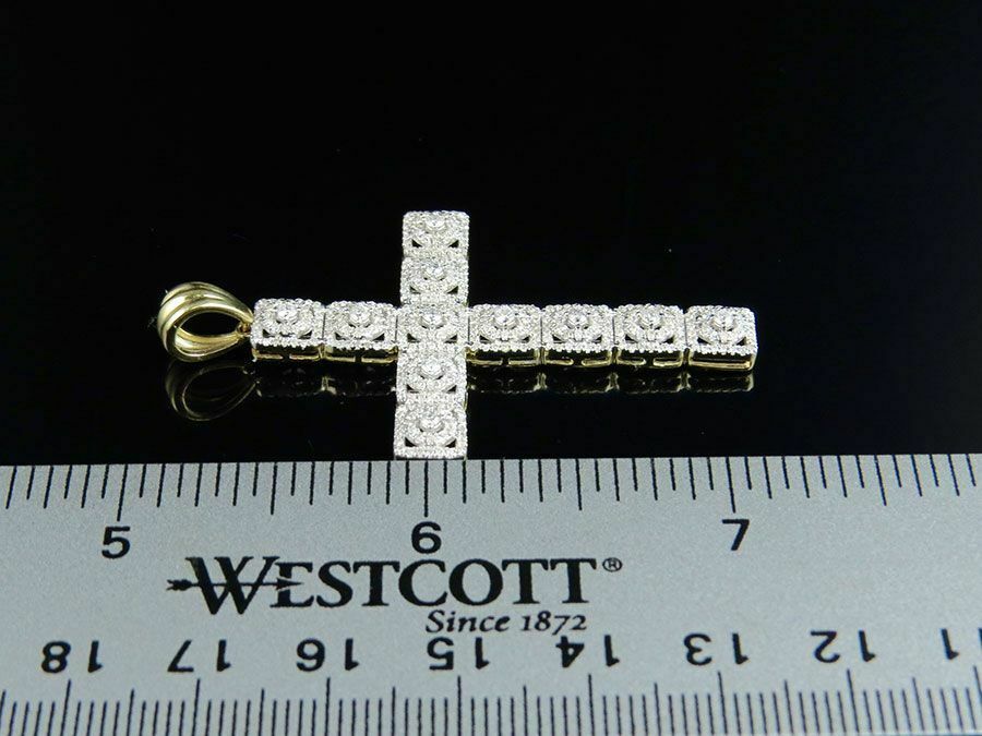 2.25ct Round Cut VVS1D Diamond Pendant Square Cluster Cross 14k Yellow Gold Over
