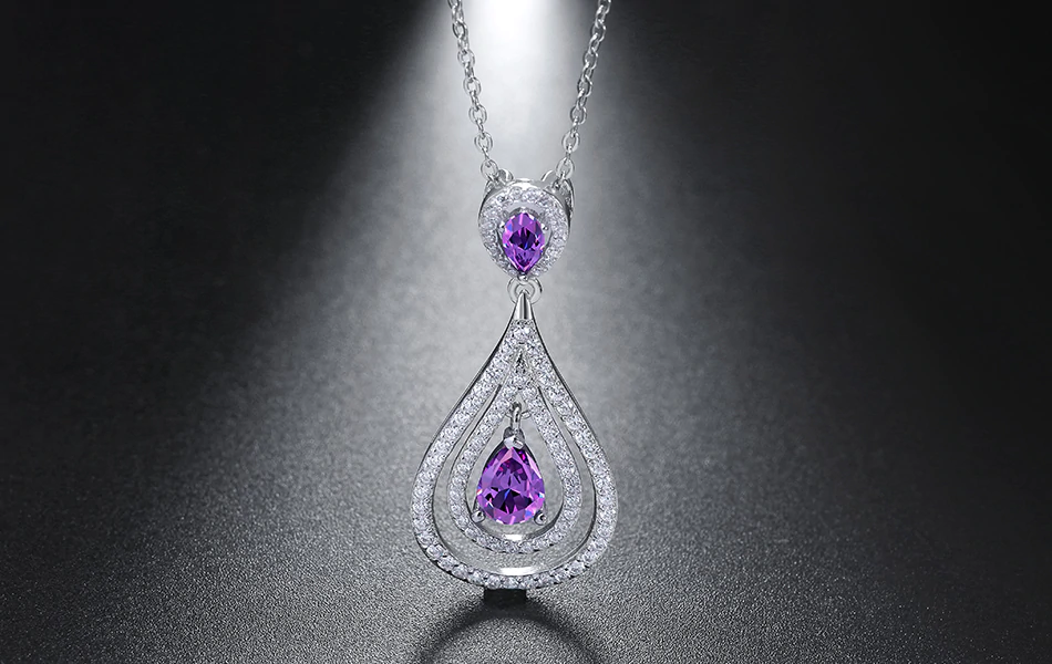 2.6ct Pear Cut Purple Amethyst Pendant Chain Halo Water Drop 14k White Gold Over