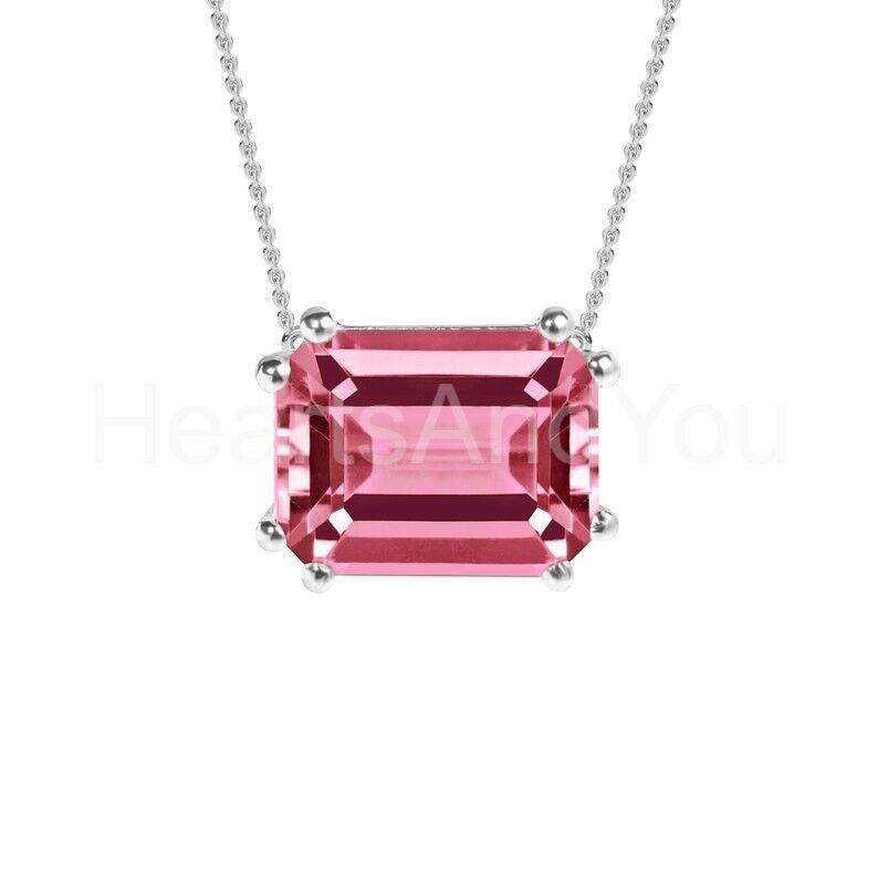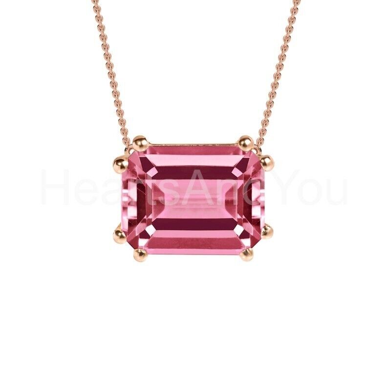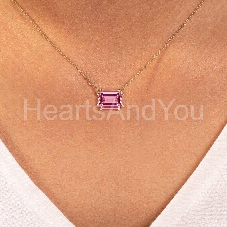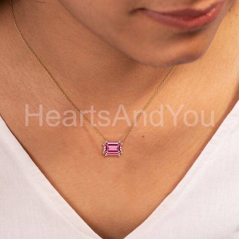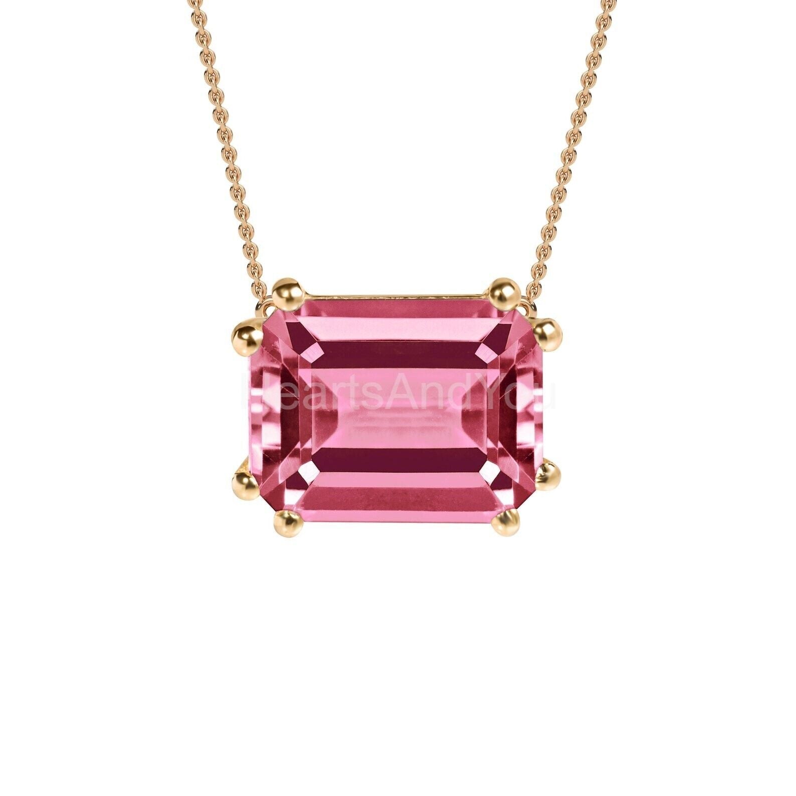 2ct Emerald Cut Simulated Pink Sapphire Solitaire Pendant with Chain 14k Yellow Gold Plated
