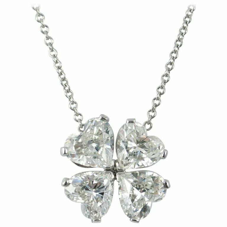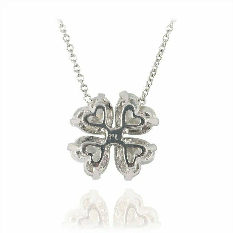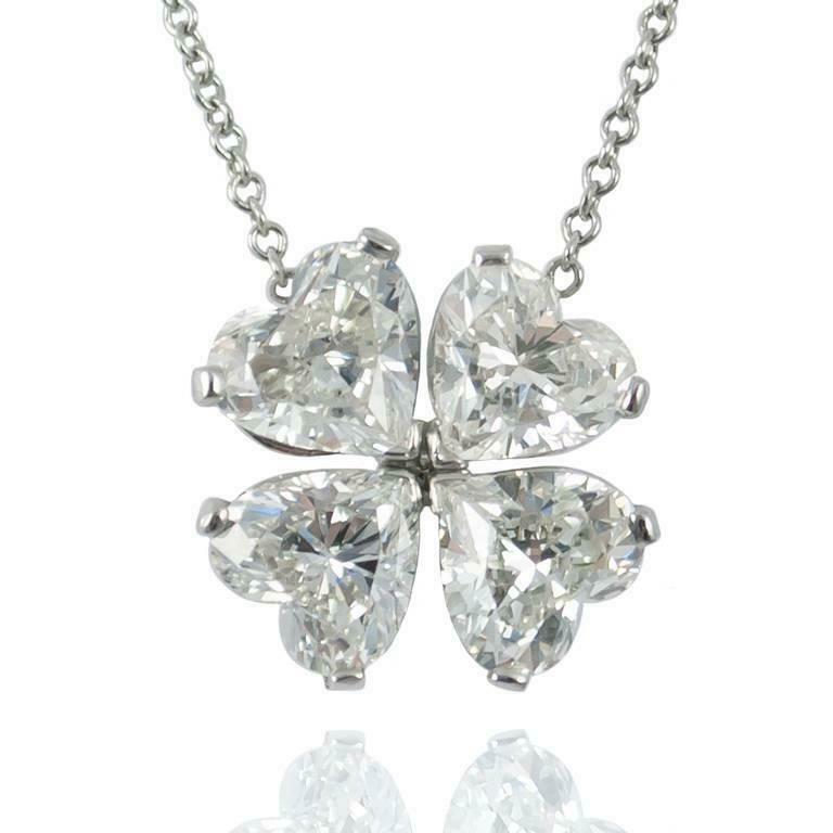 2ct Heart Cut Diamond Pendant with Chain Four Leaf Clover 14k White Gold Finish