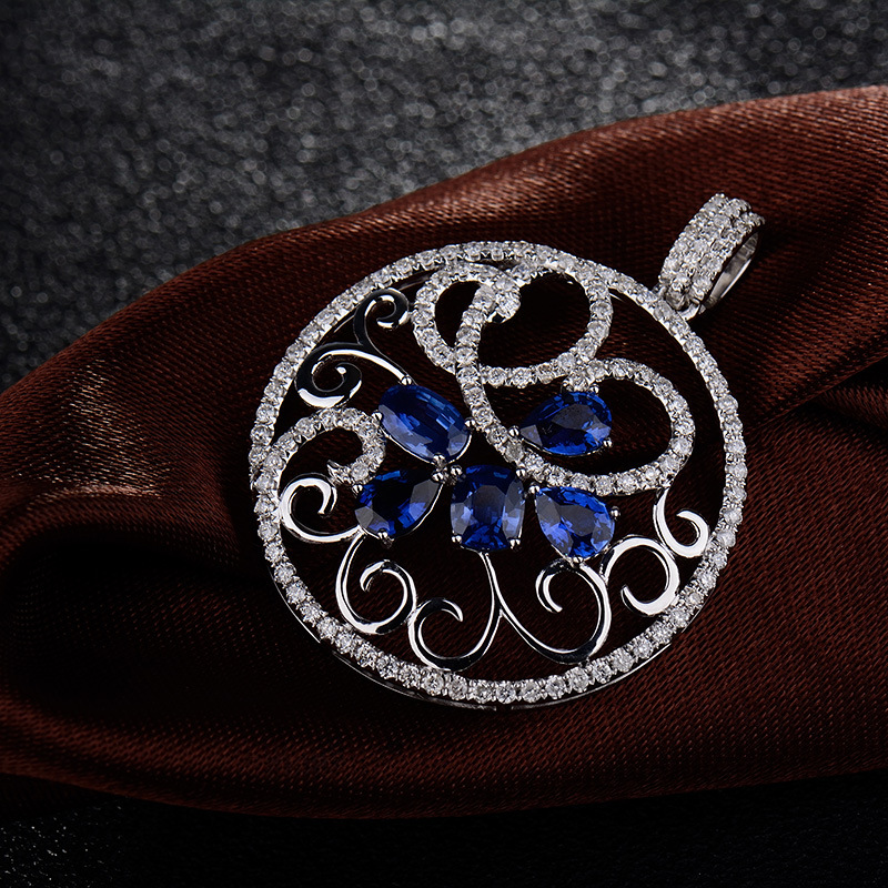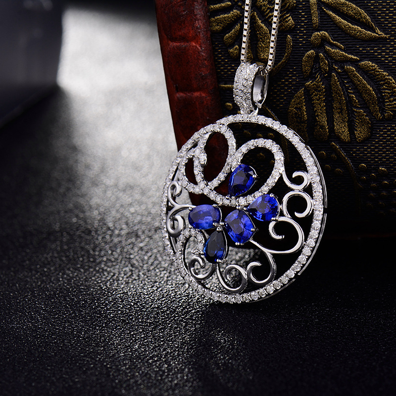 2ct Pear Cut Blue Sapphire Flower Wedding Pendant 14k White Gold Finish NO CHAIN