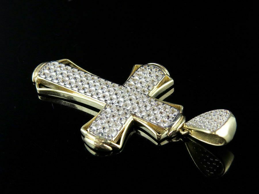 2ct Round Cut VVS1D Diamond Pendant Three Row Dome Cross 14k Yellow Gold Finish