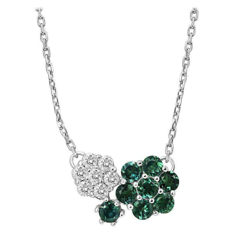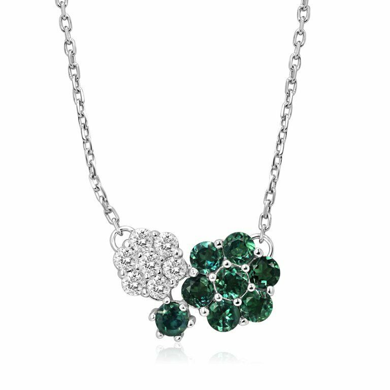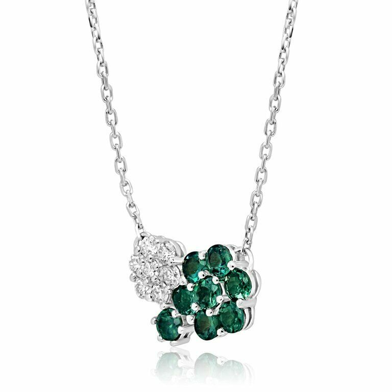 2ct Round Cut Green Emerald & Diamond Dual Flower Pendant Chain 14k White Gold Over