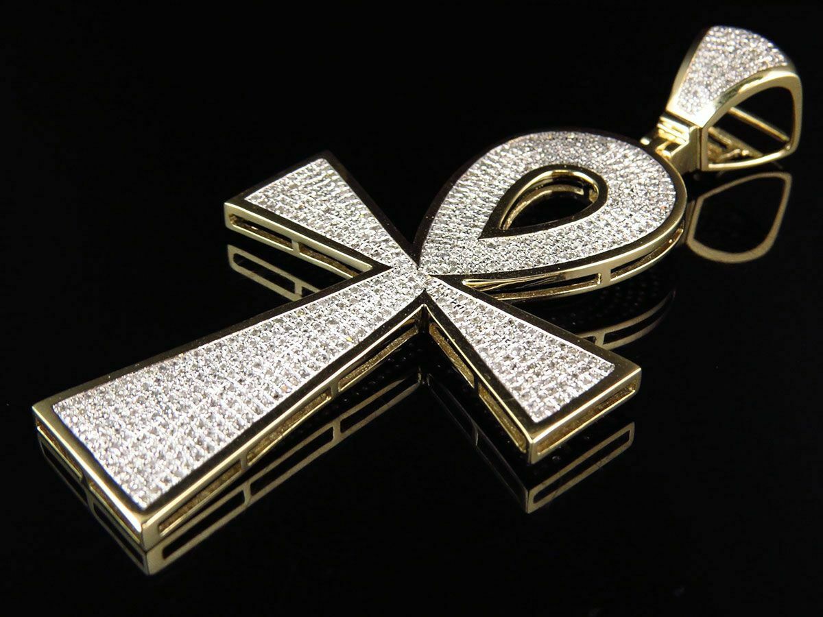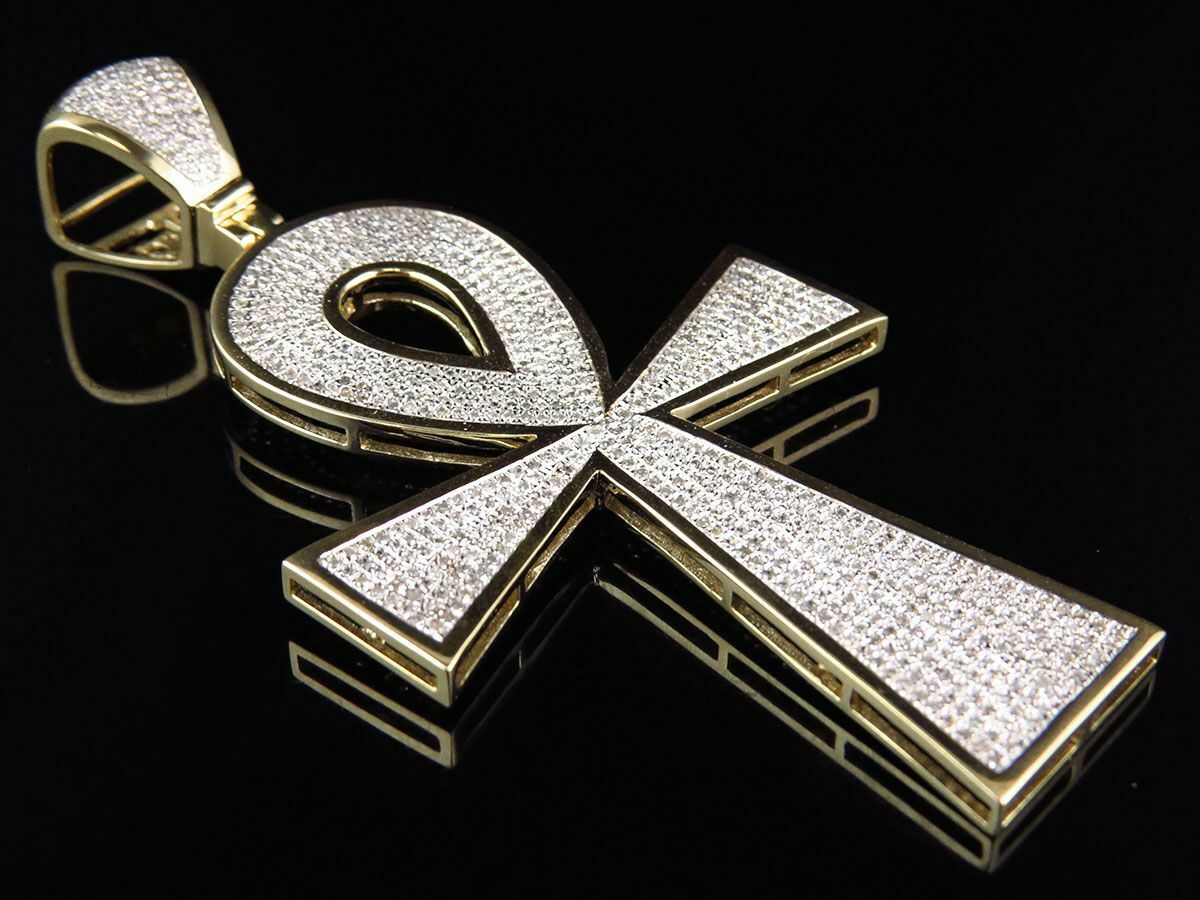 3.3ct Round Cut VVS1D Diamond Pendant Egyptian Ankh Cross 14k Yellow Gold Finish