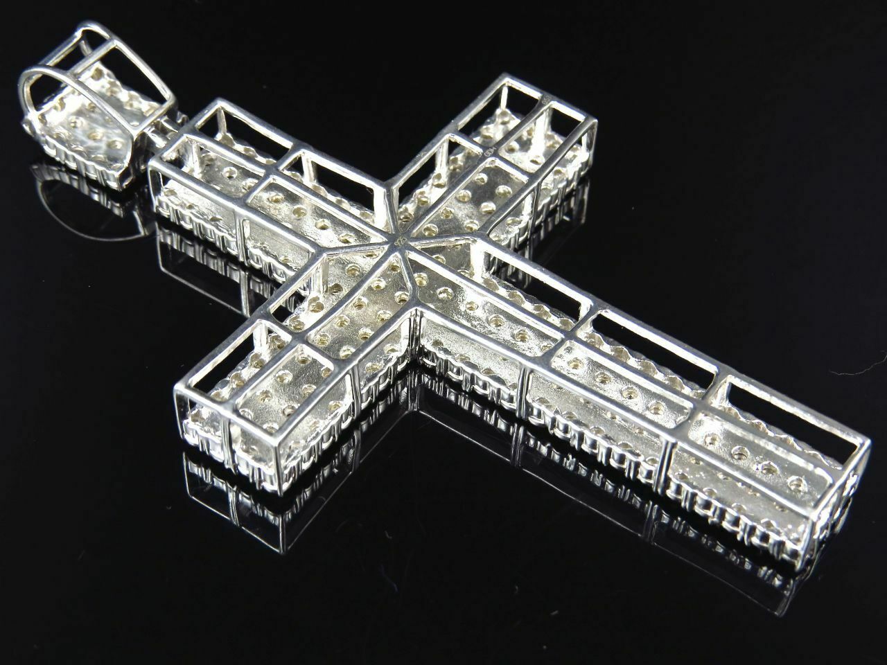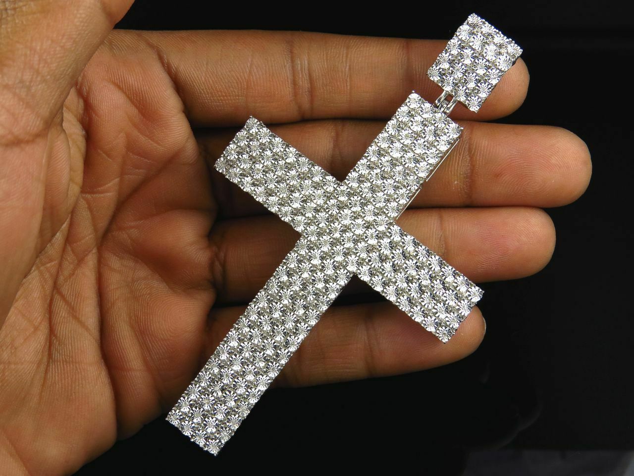 3.75ct Round Cut VVS1D Diamond Pendant Cluster Jesus Cross 14k White Gold Finish