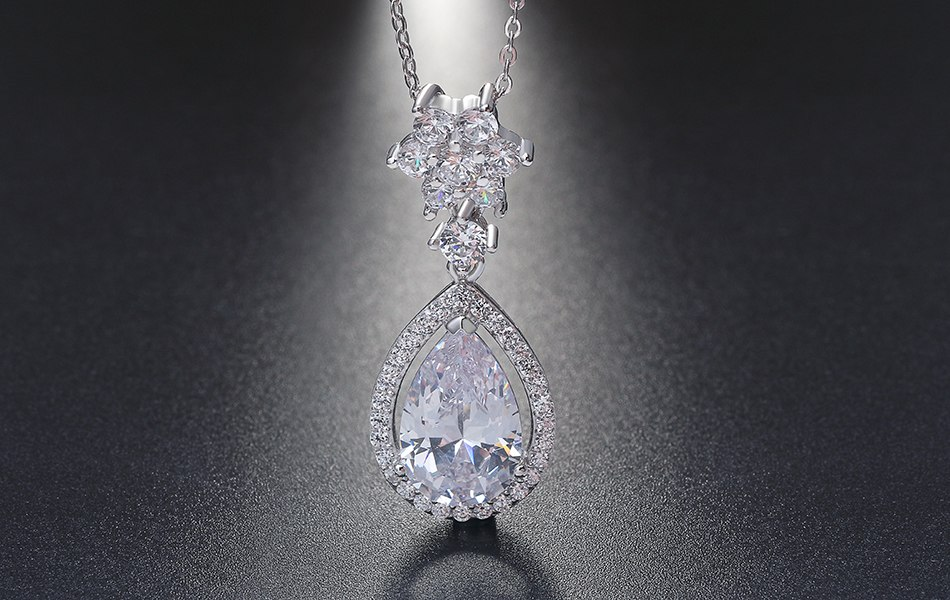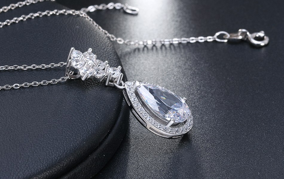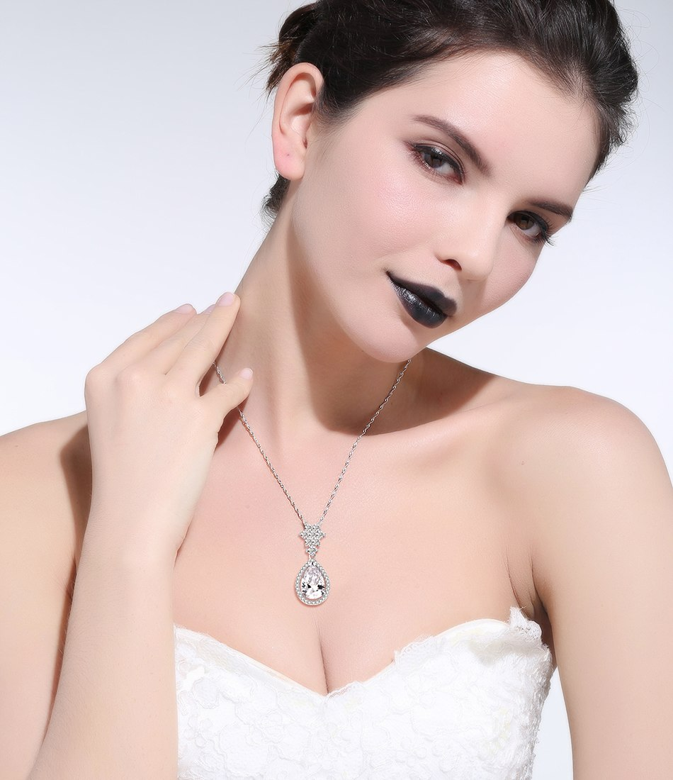 3ct Pear Diamond Halo Water Drop Shape Pendant with Chain 14k White Gold Finish