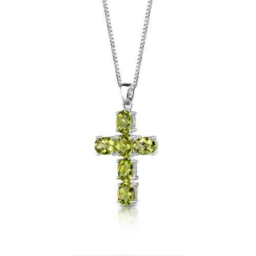 4Ct Oval Cut Green Peridot Jesus Cross Pendant 14K White Gold Finish NO CHAIN