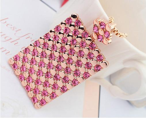 4Ct Round Cut Pink Sapphire Rectangular Pendant 14K Rose Gold Finish NO CHAIN
