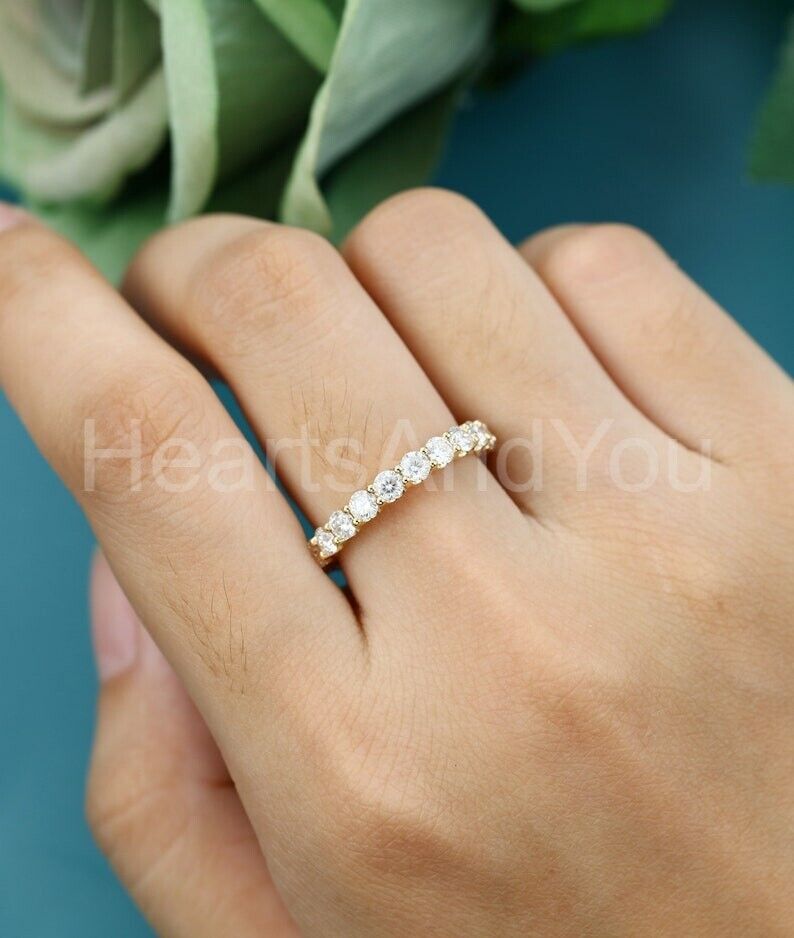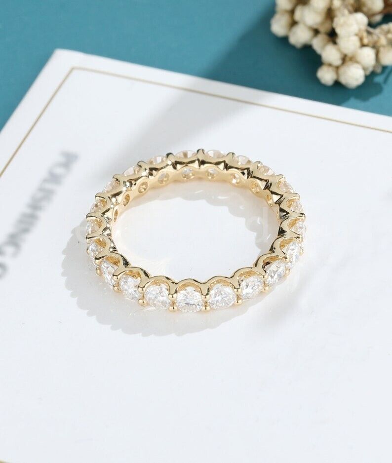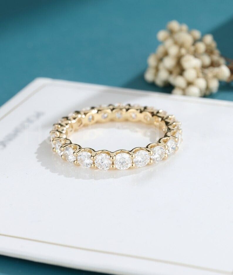 1.2ct Round Cut Moissanite Full Eternity Wedding Band 14k Yellow Gold Plated