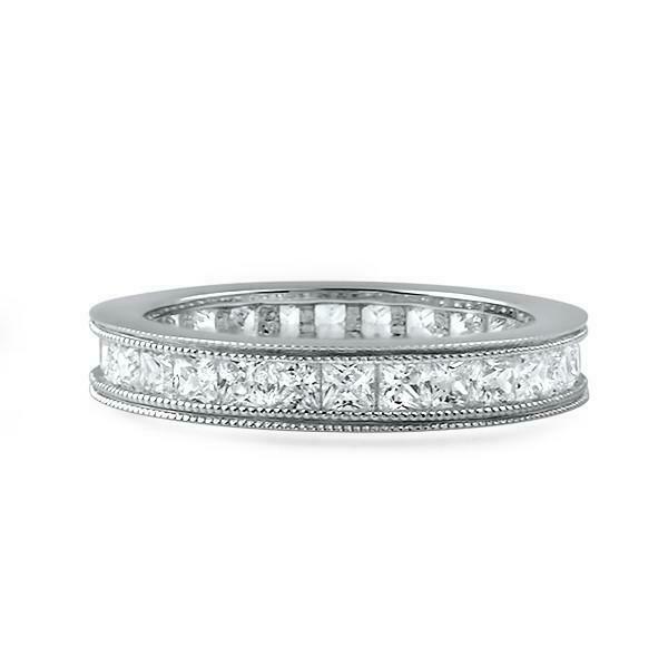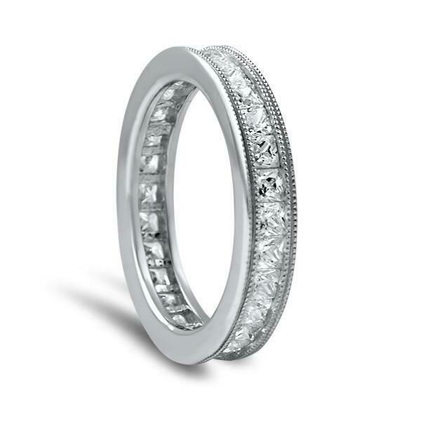1.5ct Princess Cut Diamond Wedding Ring Band Full Eternity 14k White Gold Finish
