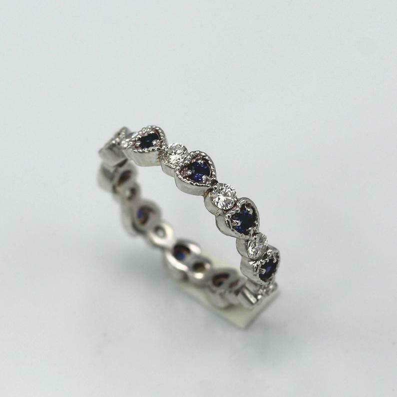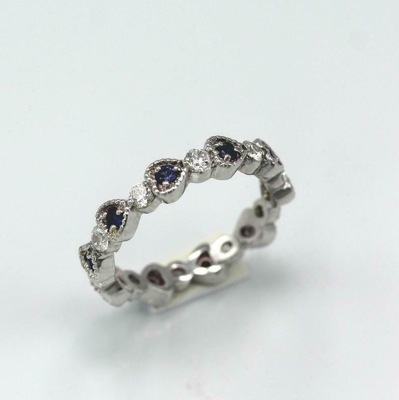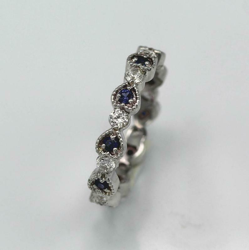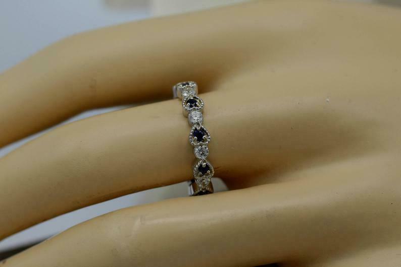 1.5ct Round Cut Blue Sapphire Wedding Band Full Eternity 14k White Gold Finish
