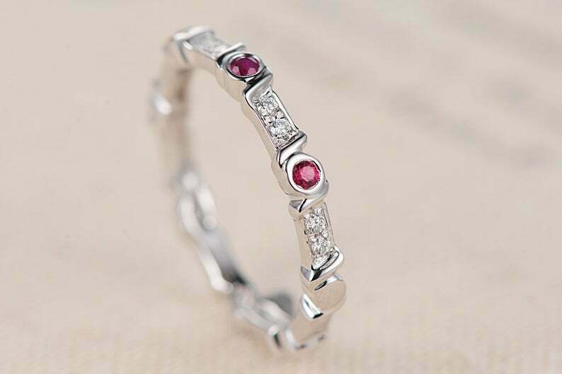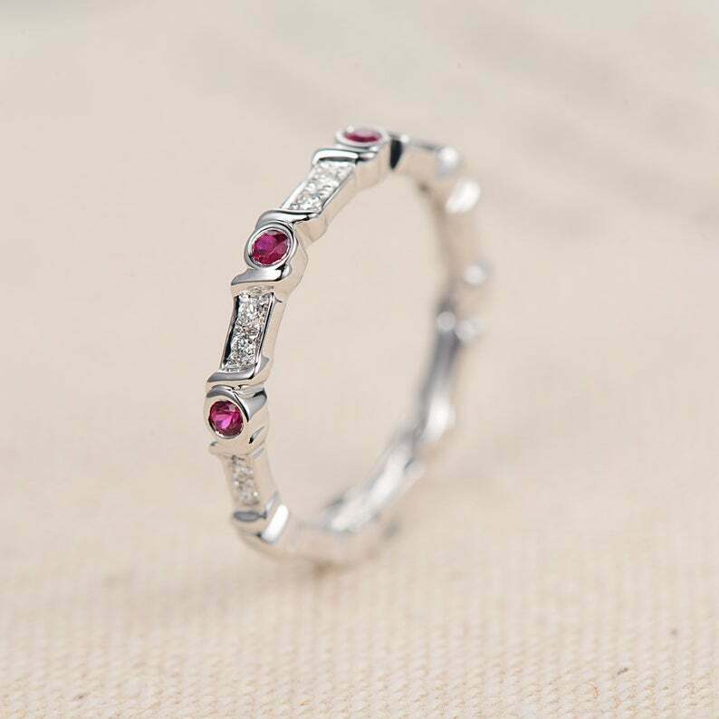 1.5ct Round Cut Pink Ruby Wedding Band Full Eternity 14k White Gold Finish