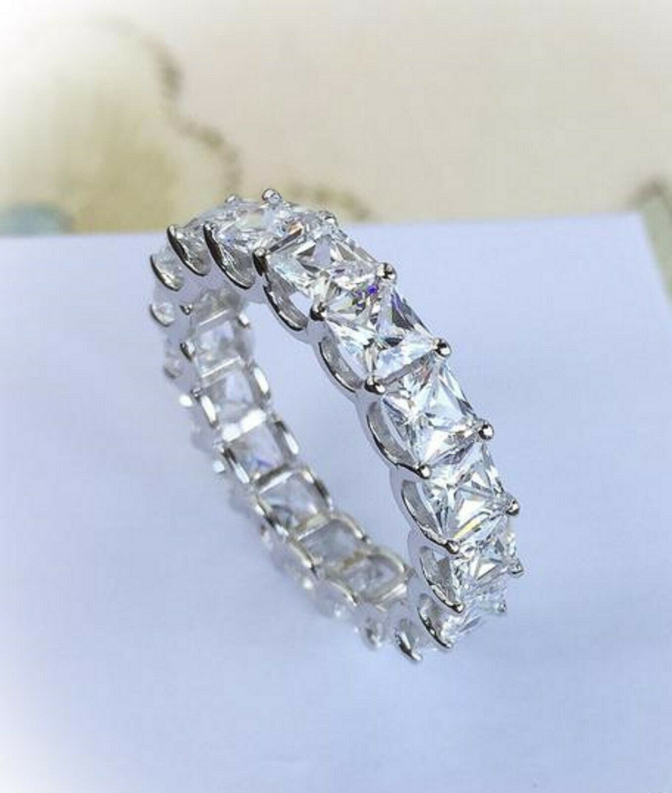 1ct Princess Cut Diamond Wedding Ring Band Full Eternity 14k White Gold Finish