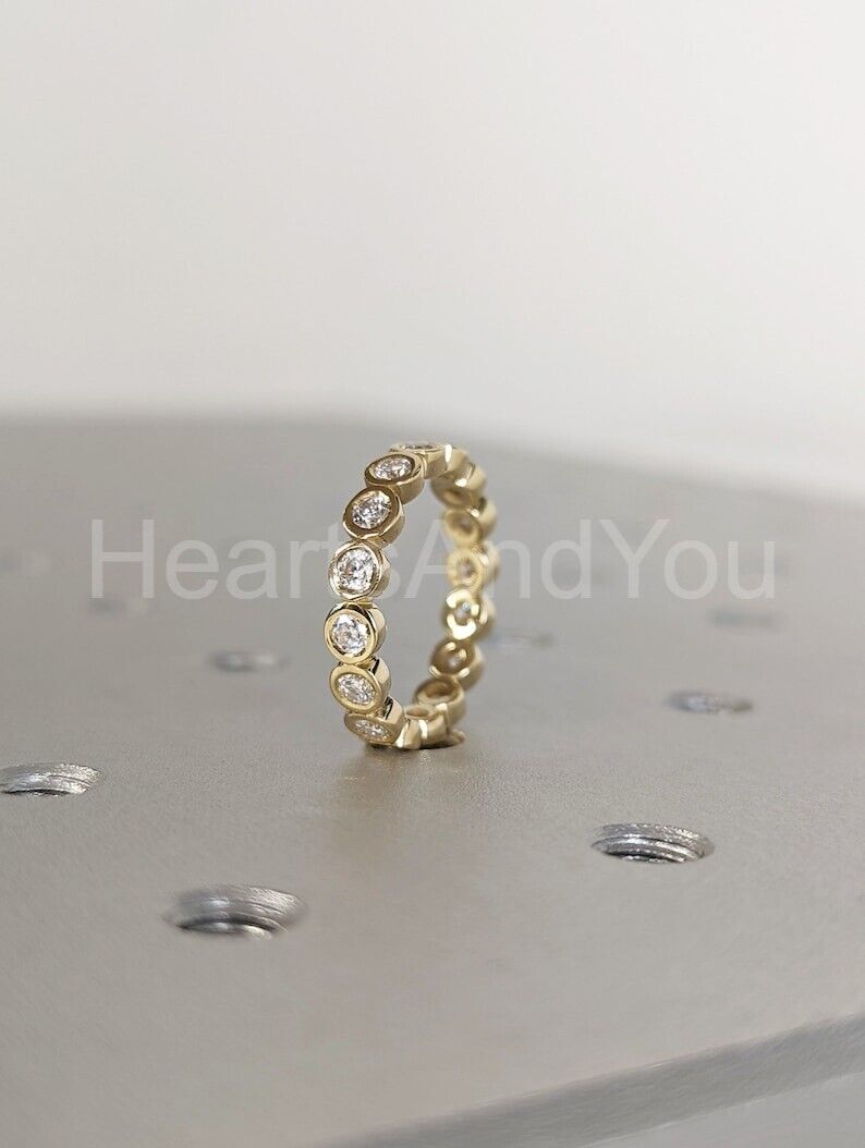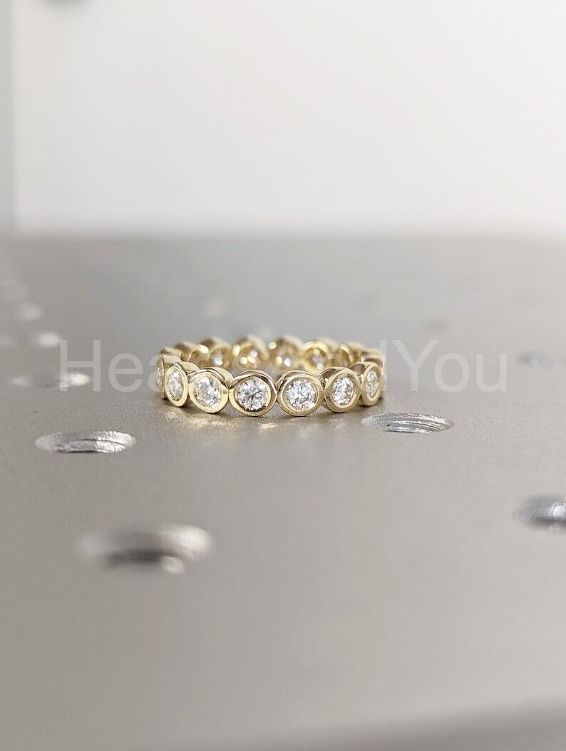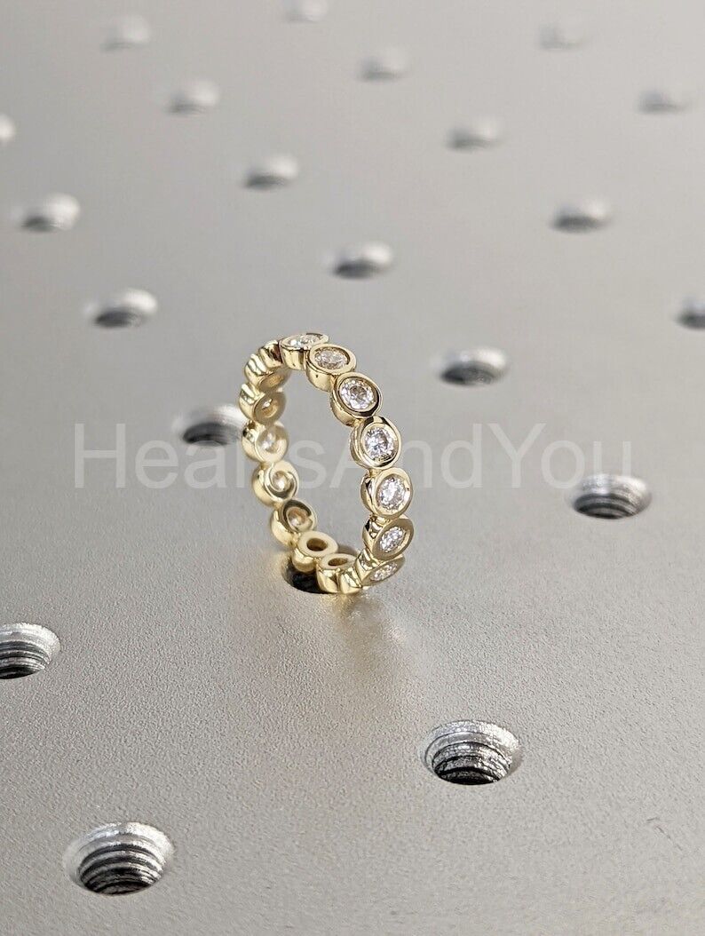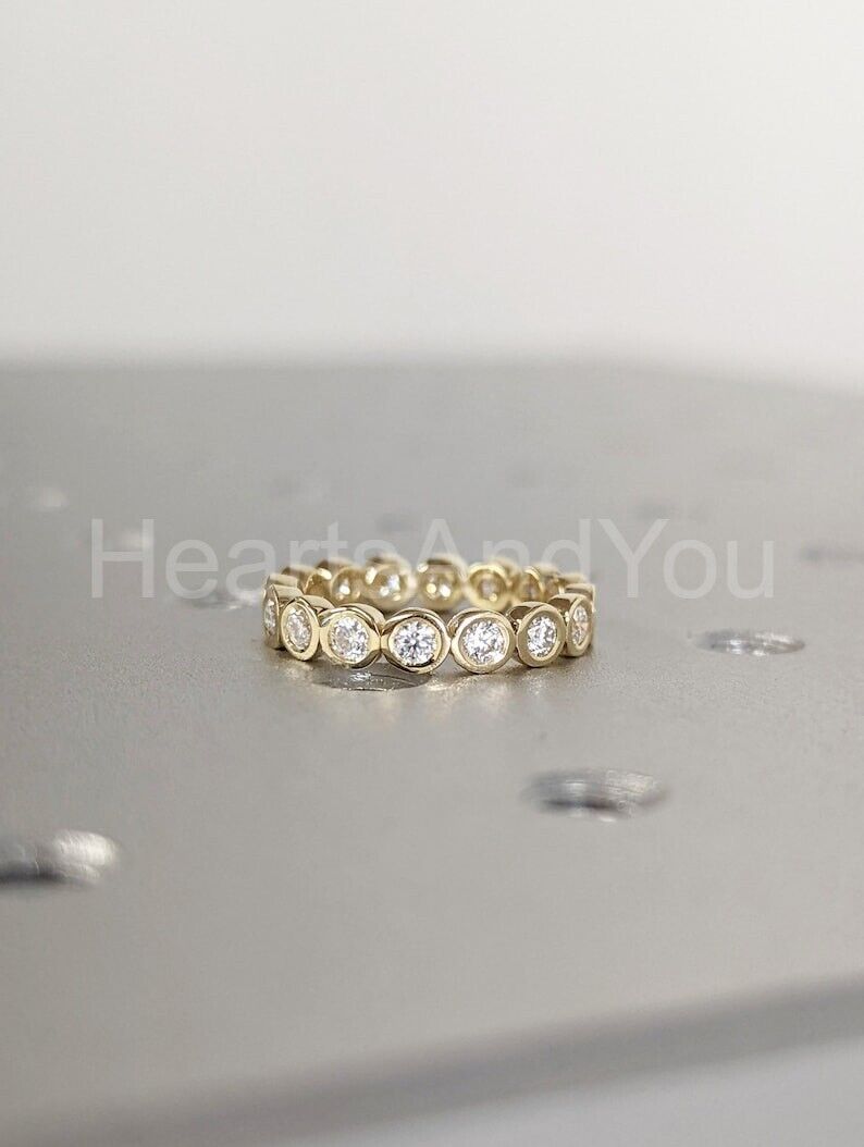 1ct Round Cut Moissanite Bezel Full Eternity Wedding Band 14k Yellow Gold Plated