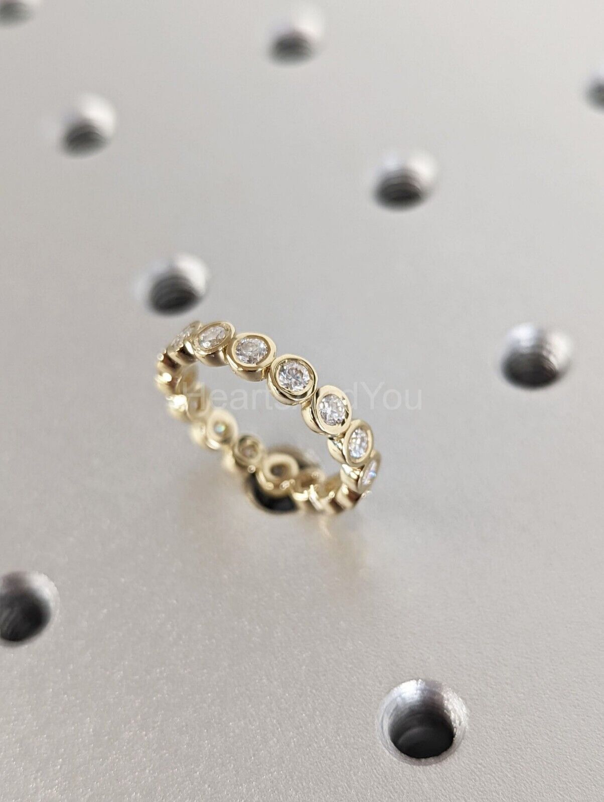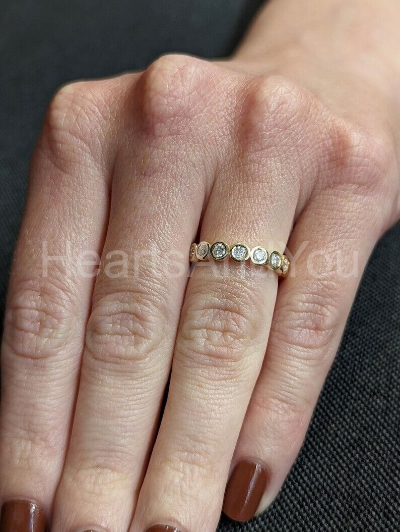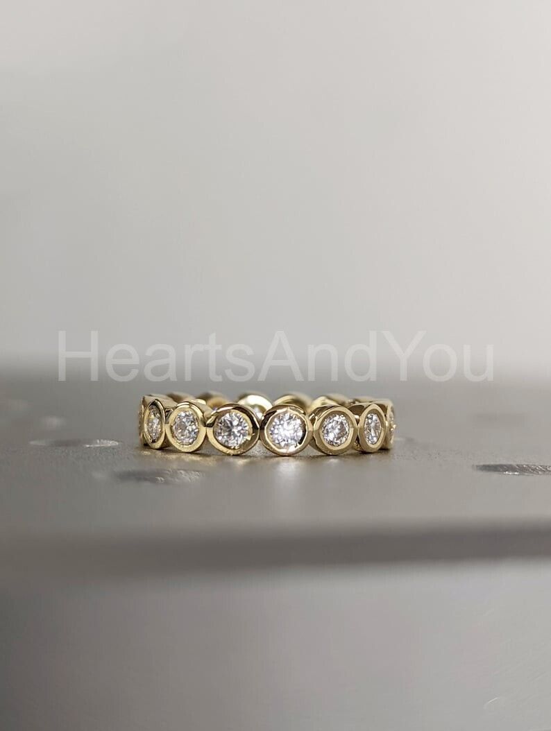 1ct Round Cut Moissanite Bezel Full Eternity Wedding Band 14k Yellow Gold Plated