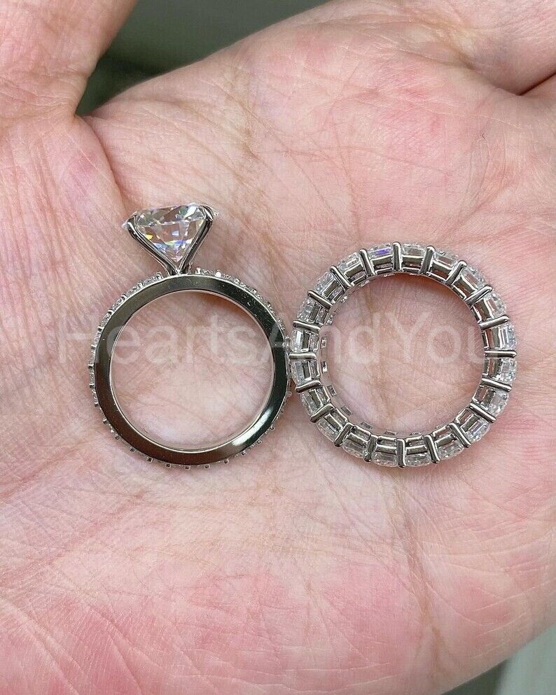 2.1ct Round Cut Moissanite Full Eternity Band Bridal Set 14k White Gold Plated