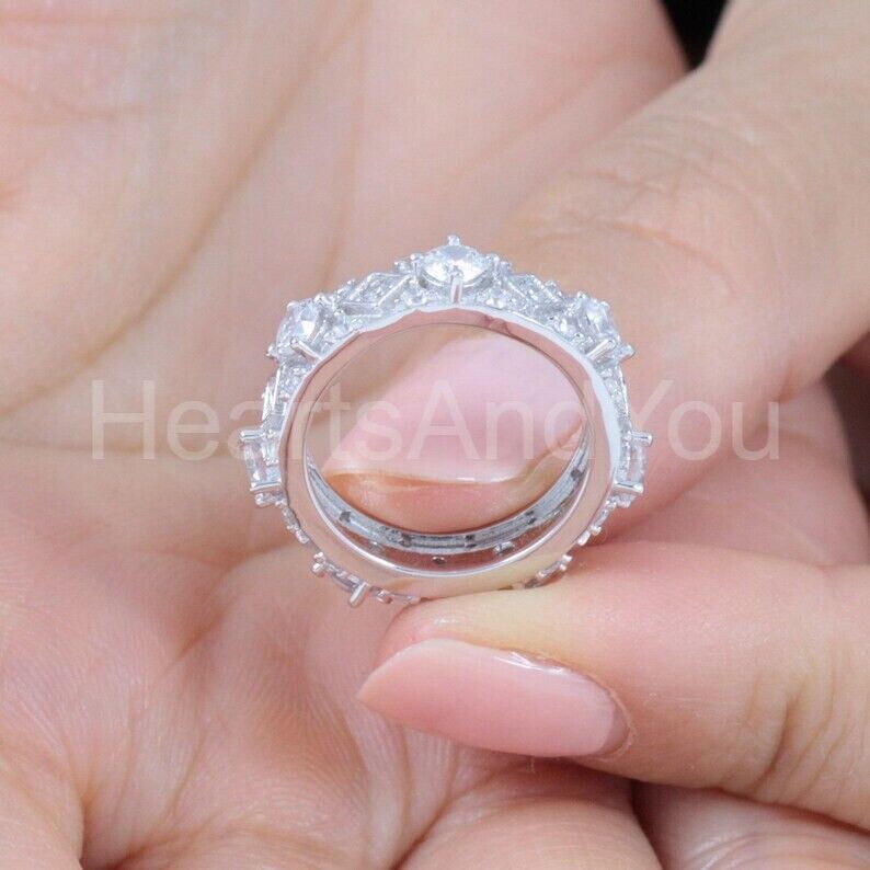 2.5ct Round Cut Moissanite Tile Design Full Eternity Band 14k White Gold Plated