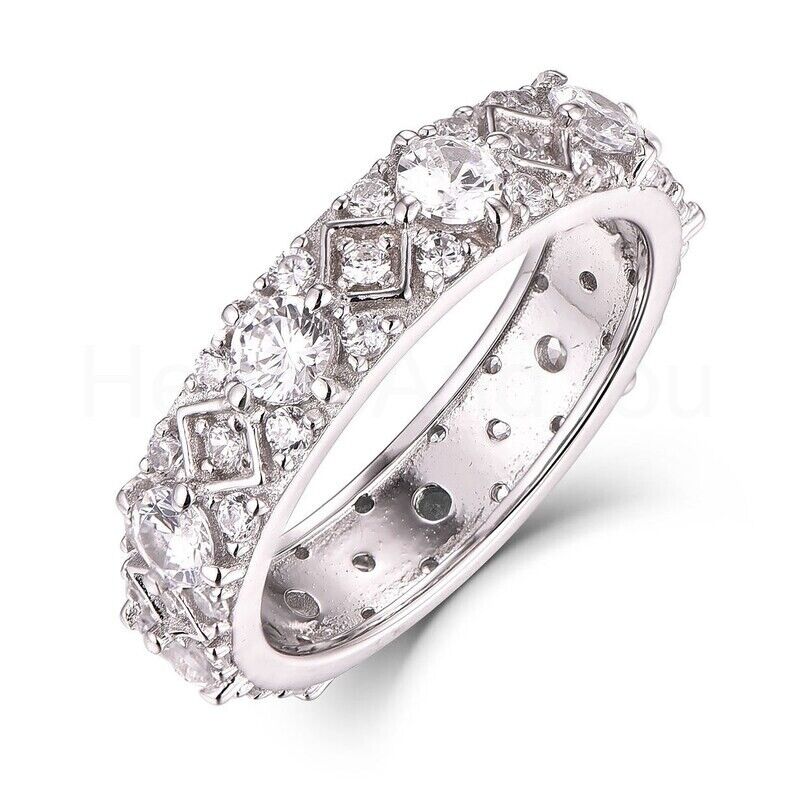 2.5ct Round Cut Moissanite Tile Design Full Eternity Band 14k White Gold Plated