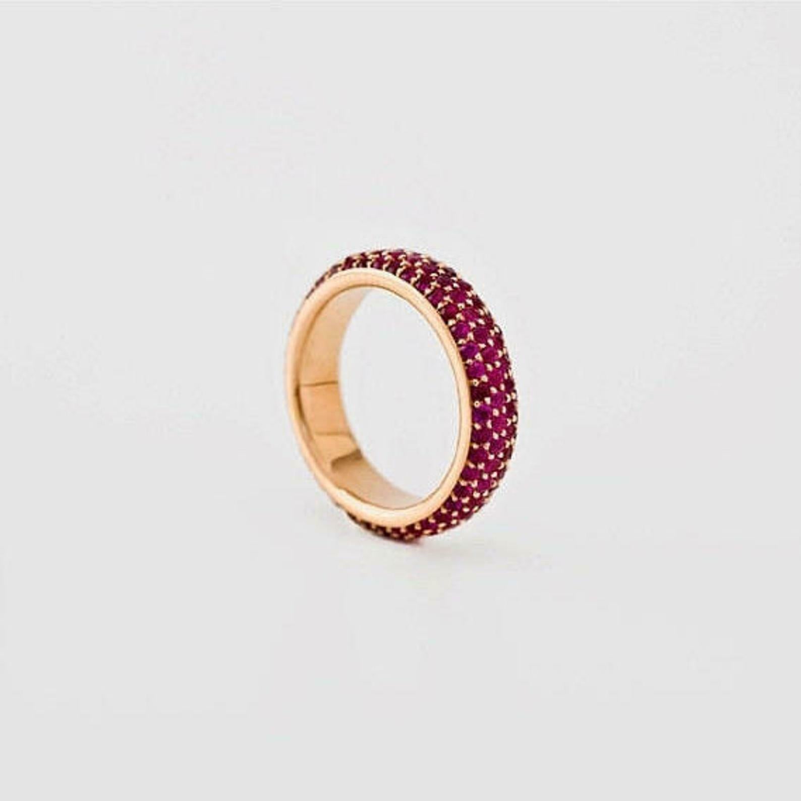 2.5ct Round Cut Pink Ruby Wedding Band 4 Row Full Eternity 14k Rose Gold Finish