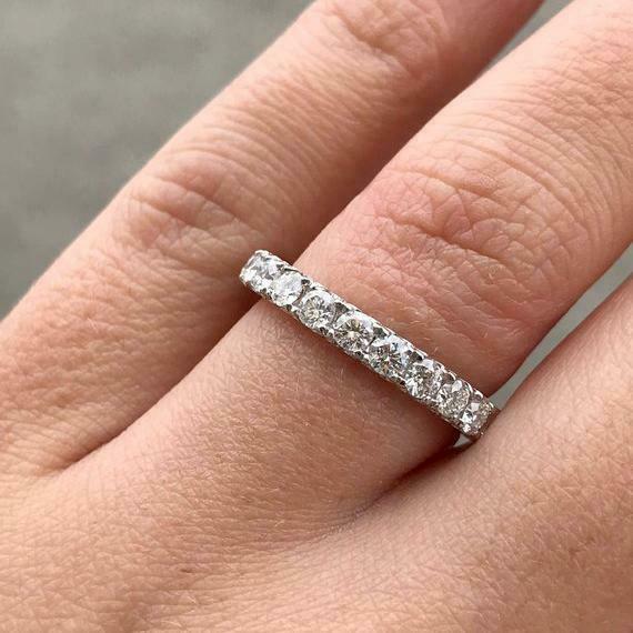 2Ct Round Brilliant Cut Diamond Full Eternity Wedding Band 14K White Gold Finish