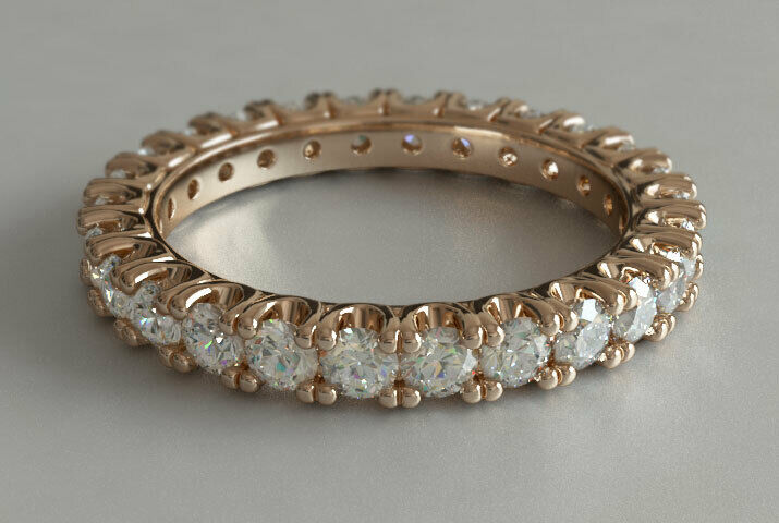 3ct Round Cut VVS1D Diamond Wedding Ring Band Full Eternity 14k Rose Gold Finish
