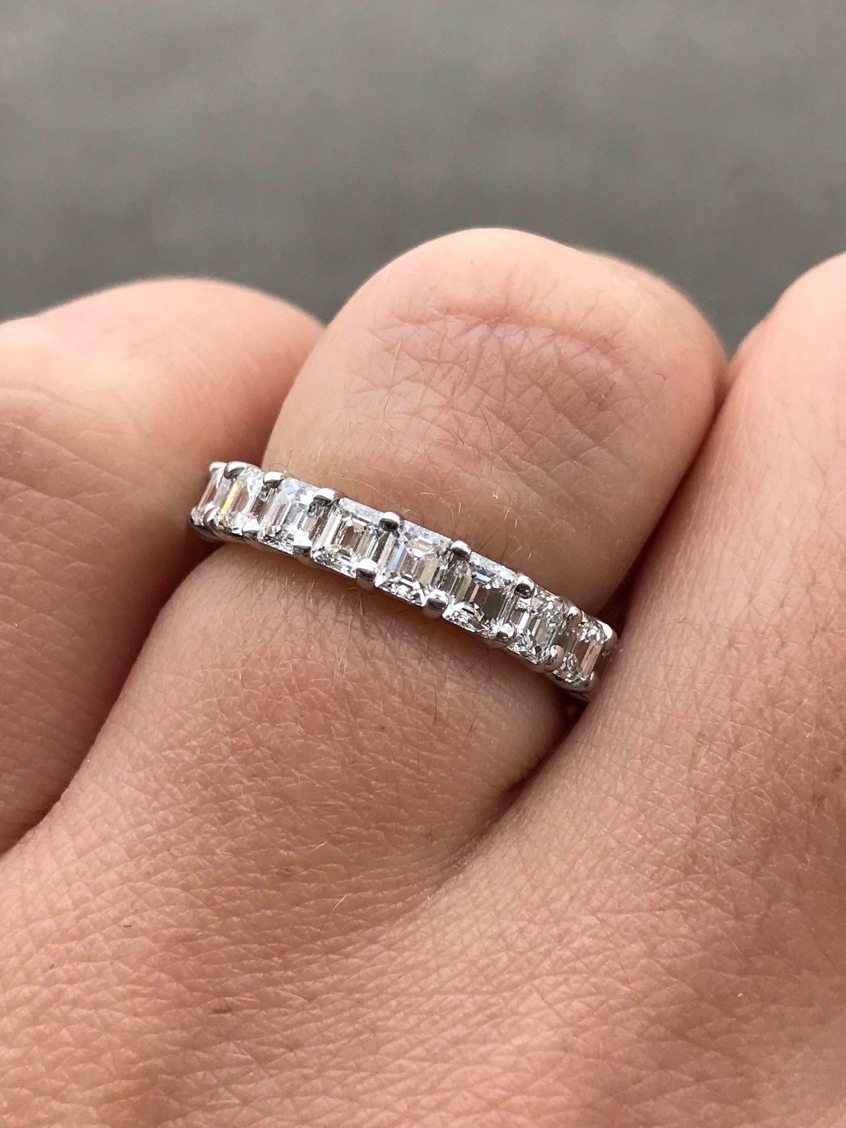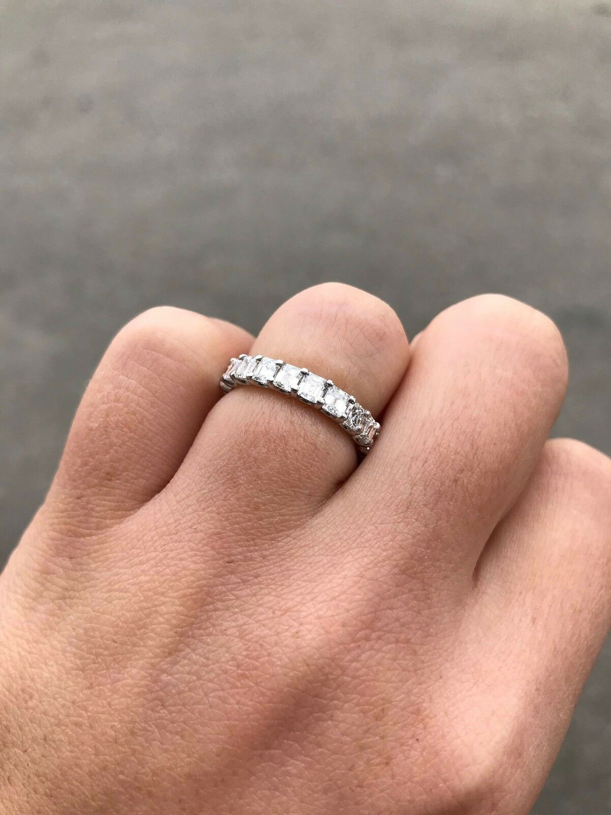 4ct Asscher Cut Diamond Full Eternity Iced Wedding Band 14k White Gold Finish