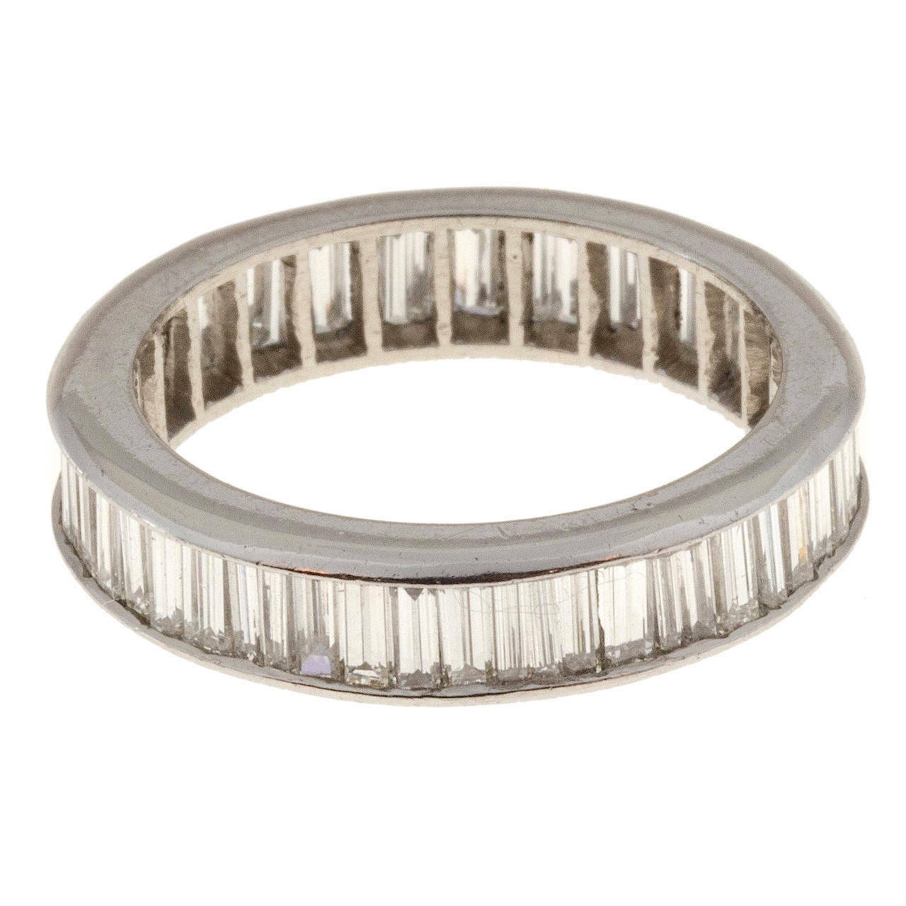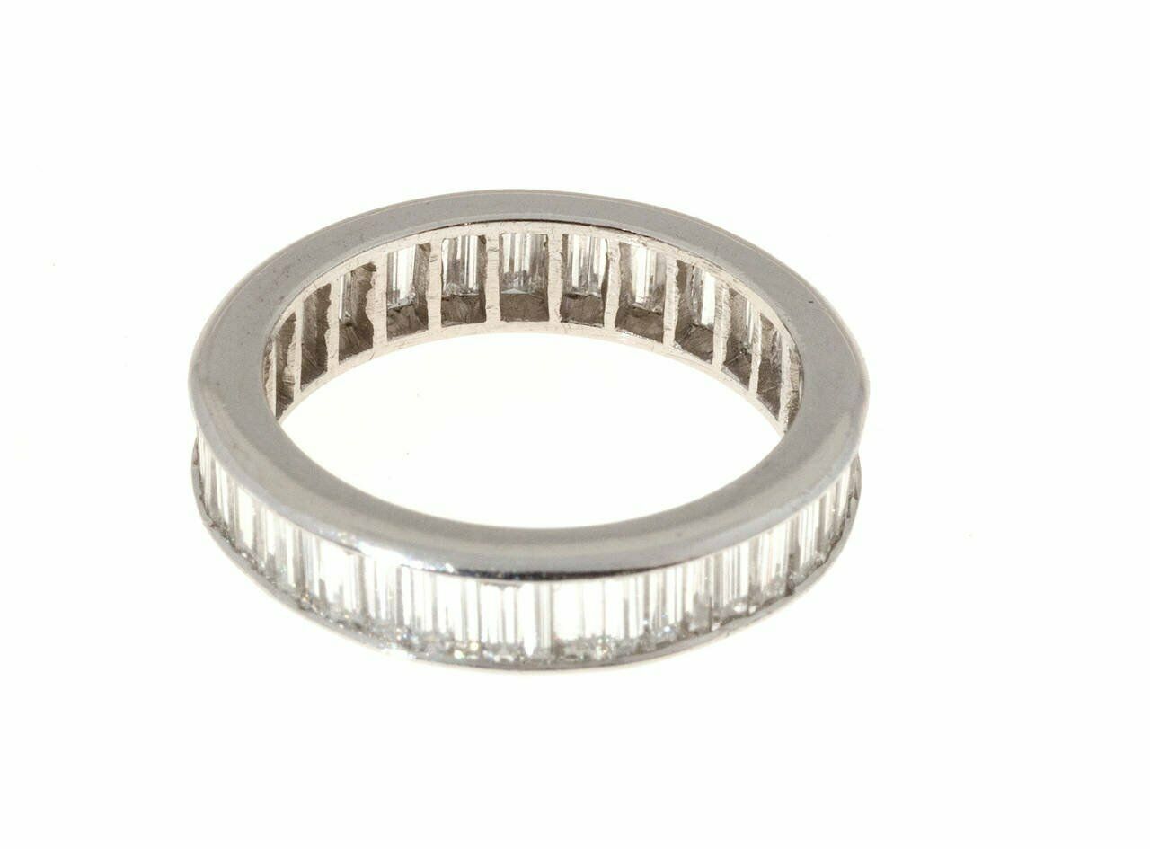 4ct Baguette Cut Diamond Wedding Ring Band Full Eternity 14k White Gold Finish