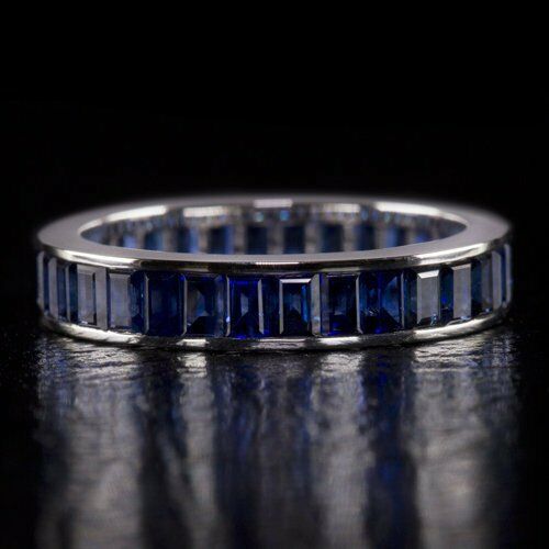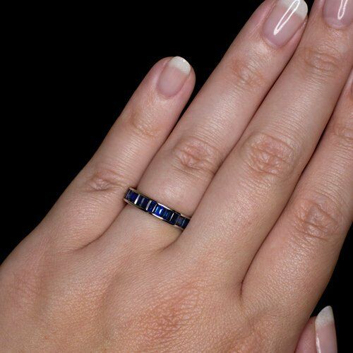 4Ct Emerald Cut Blue Sapphire Full Eternity Wedding Band 18K White Gold Finish