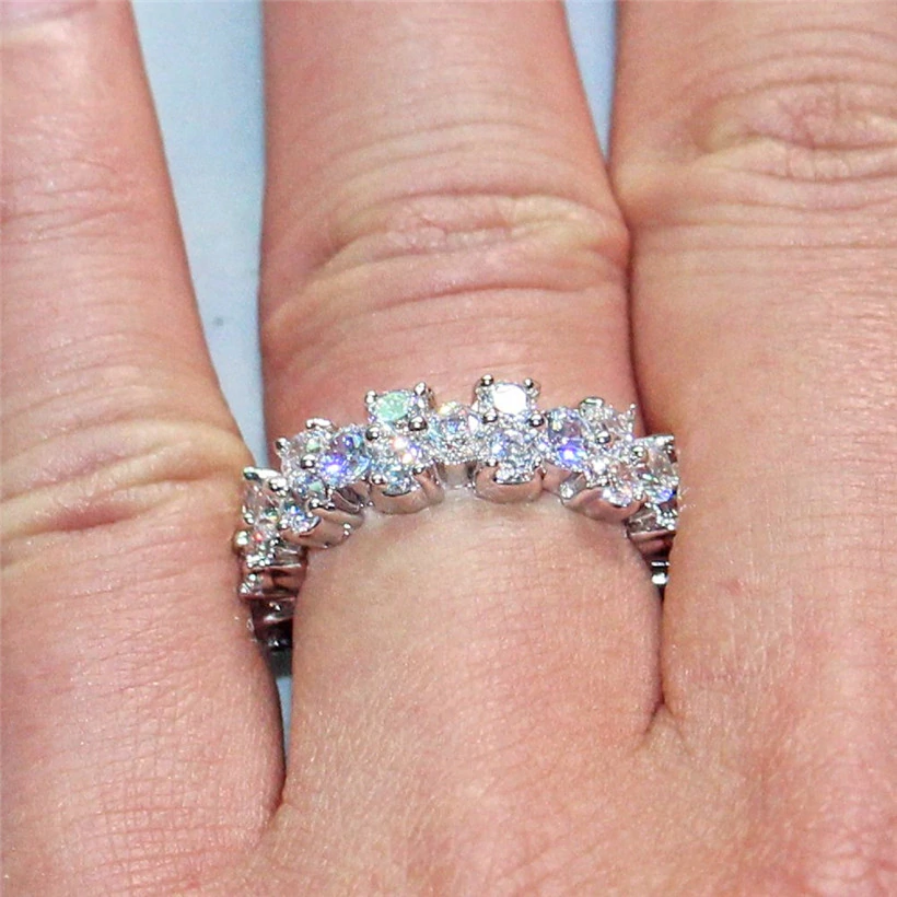 4ct Round Cut VVS1 Diamond Wedding Ring Band 14k White Gold Finish Full Eternity