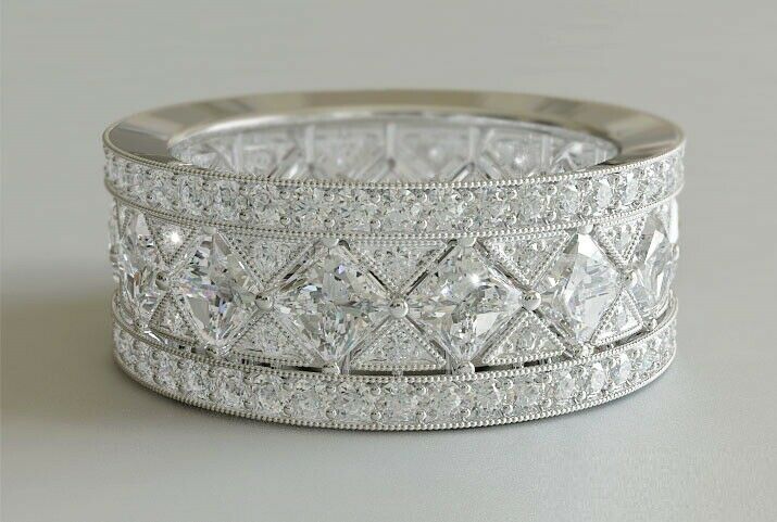 5ct Princess Cut Diamond Wedding Band Milgrain Full Eternity 14k White Gold Over