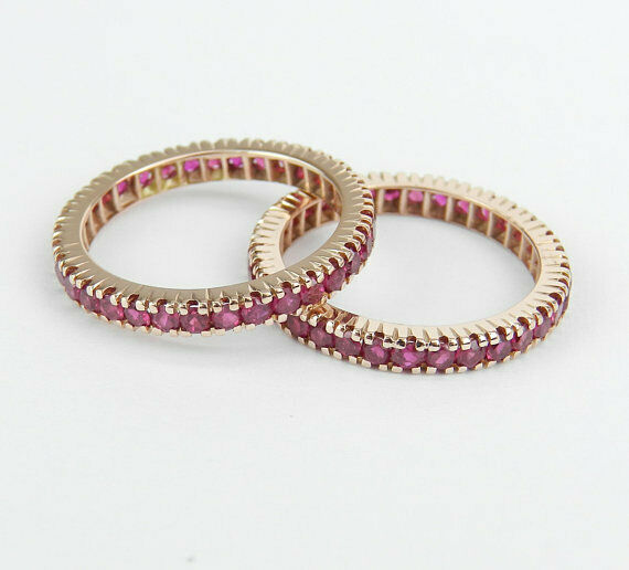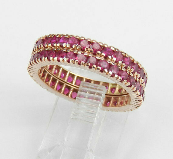 5Ct Round Cut Pink Ruby Full Eternity Dual Wedding Band Set 14K Rose Gold Finish