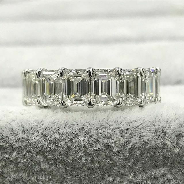 6.5Ct Emerald Cut Diamond Women Wedding Band 14K White Gold Finish Full Eternity